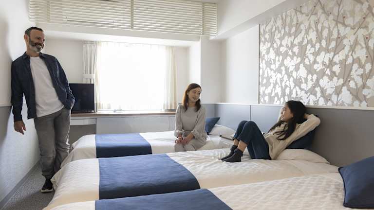 Die Zimmer im Plaza Osaka Hotel sind in einem eleganten rosa und weißen Design gestaltet und verfügen über eine Klimaanlage, einen LCD-TV, einen Wasserkocher und einen Kühlschrank. Zur Ausstattung gehören auch Hausschuhe und ein Haartrockner. WLAN steht Ihnen im gesamten Hotel kostenfrei zur Verfügung.