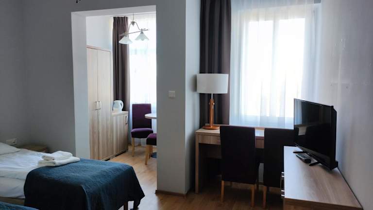 Das Polonia Resort ist eine ideale Wahl für einen entspannten Strandurlaub, da es nur 50 m von der Ostsee und einem wunderschönen Sandstrand entfernt liegt. Die Zimmer sind hell und gut ausgestattet, mit Annehmlichkeiten wie Strandausrüstung, einem Wasserkocher und einem Kühlschrank. Jeden Morgen erwartet Sie ein köstliches Frühstücksbuffet im Speisezimmer des Resorts. Das freundliche Personal an der Rezeption ist rund um die Uhr für Sie da und hilft Ihnen gerne bei allen Anliegen. Das Resort befindet sich in der Nähe des Bahnhofs Misdroy (Międzyzdroje) und des beliebten Wachsfigurenkabinetts.
