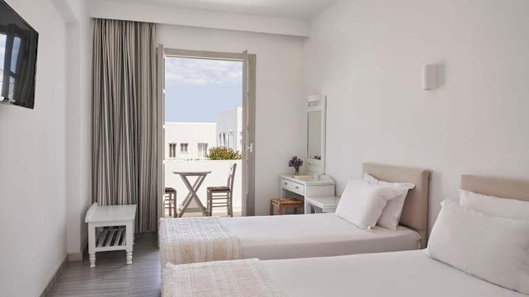 Die Zimmer im Polos Hotel Paros sind hell, geräumig und bieten eine gemütliche Atmosphäre. Sie sind mit einem Kühlschrank, kostenlosem WLAN und einem Haartrockner ausgestattet. Jedes Zimmer verfügt über Klimaanlage, einen TV, einen Safe und ein Telefon. Auf Anfrage sind auch Babybetten erhältlich, um den Bedürfnissen von Familien gerecht zu werden.