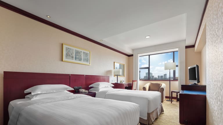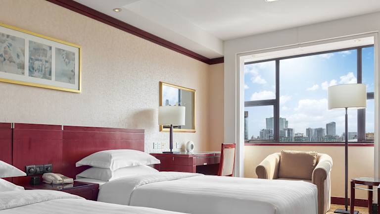 Die Zimmer sind mit modernen Annehmlichkeiten sowie traditionellem chinesischen Dekor ausgestattet und bieten Klimaanlage, ein Sofa, einen Safe, eine Minibar und einen Schreibtisch. Die Bäder verfügen über Pflegeprodukte, eine Badewanne und eine Dusche. Einige Zimmer sind barrierefrei und Nichtraucherzimmer sind ebenfalls vorhanden.