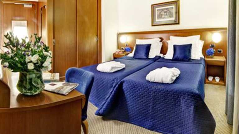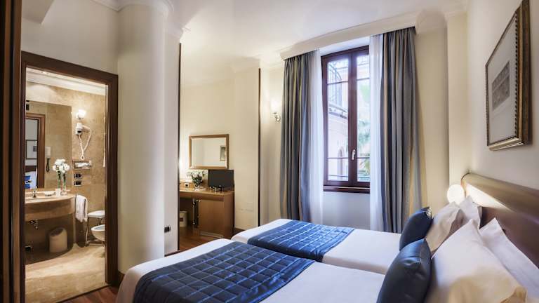 Erleben Sie das Hotel Ponte Sisto, ein ehemaliges Kloster im Herzen von Rom, das Ihnen eine entspannte und elegante Atmosphäre bietet. Genießen Sie das amerikanische Frühstücksbuffet im ruhigen Innenhof und erkunden Sie die Sehenswürdigkeiten der Stadt, die alle in der Nähe liegen. Die modernen und geräumigen Zimmer sind mit allen Annehmlichkeiten ausgestattet, darunter Klimaanlage, Sat-TV und kostenloses WLAN. Das Hotel bietet auch eine Bar, eine 24-Stunden-Rezeption und organisiert gerne Stadttouren für Sie.