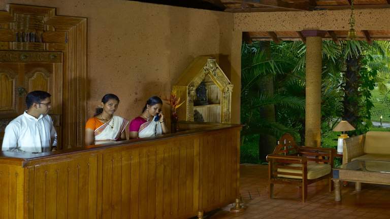 Das Restaurant Tiffins bietet eine vielfältige Auswahl an Speisen, darunter internationale, asiatische, indische und lokale Gerichte aus Kerala. Zusätzlich erwartet die Gäste ein spezialisiertes Ayurveda-Restaurant, das gesunde vegetarische Küche anbietet.