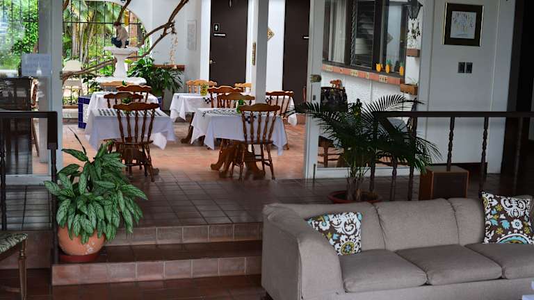 Das Posada el Quijote in San José ist eine charmante Unterkunft im Kolonialstil, die mit einem großen Garten, kostenfreiem WLAN und einer Snackbar punktet. Die hellen Zimmer sind geschmackvoll eingerichtet und bieten einen schönen Blick auf den Garten. Genießen Sie die Nähe zu Restaurants und nutzen Sie die Annehmlichkeiten wie die Gemeinschaftslounge, den Tourenschalter und die kostenfreien Parkplätze. Die Lage des Hotels ermöglicht es Ihnen, in kurzer Zeit die wichtigsten Sehenswürdigkeiten von San José zu erreichen.