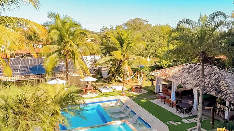 Das Pousada Bucaneiro in Búzios ist ein charmantes Hotel mit einem großen Garten und einem vielfältigen Freizeitbereich, der einen Pool, einen Whirlpool, eine Bar, Grillmöglichkeiten, ein Dampfbad, Billard und einen Massageraum umfasst. Das Hotel bietet ein kostenloses Frühstück, Parkplätze und WLAN. Die modernen Suiten verfügen über ein eigenes Bad, Klimaanlage, eine Minibar, einen Flachbild-TV und kostenfreies WLAN. Die Lage des Hotels ist ideal, da es nur 1,3 km von den Stränden Forno und Brava entfernt liegt und die beliebte Rua das Pedras im Zentrum von Búzios in nur 7 Gehminuten erreichbar ist.