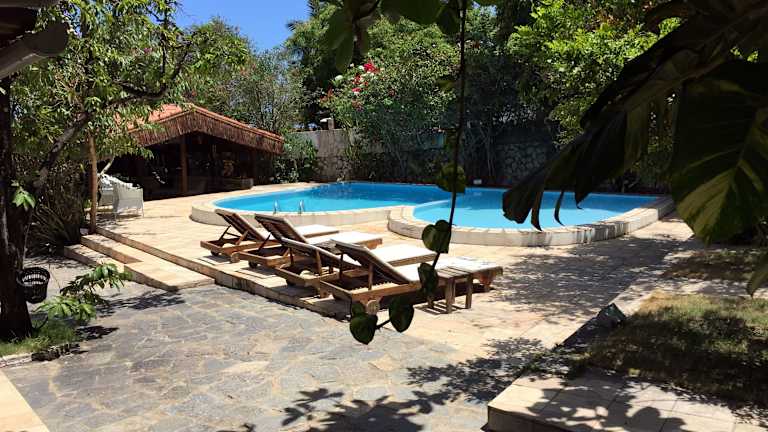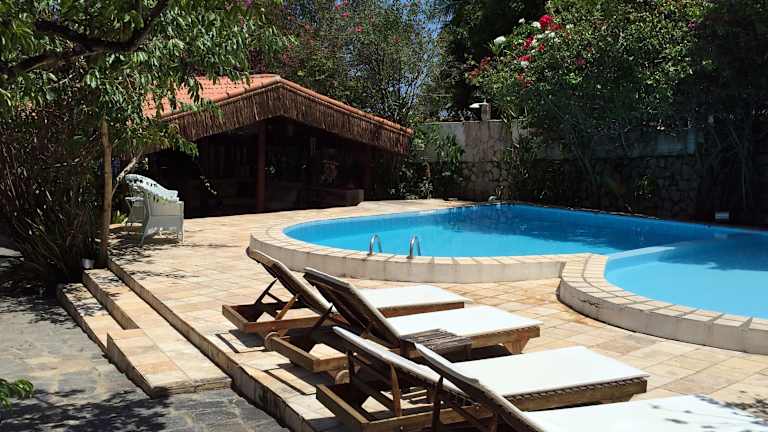 Im Außenbereich der Pousada Barbara können Sie auf gemütlichen Couches im üppigen Garten entspannen. Das Hotel bietet außerdem Massagen am Pool an, um Ihnen das ultimative Entspannungserlebnis zu bieten.