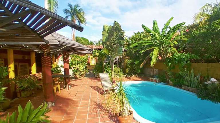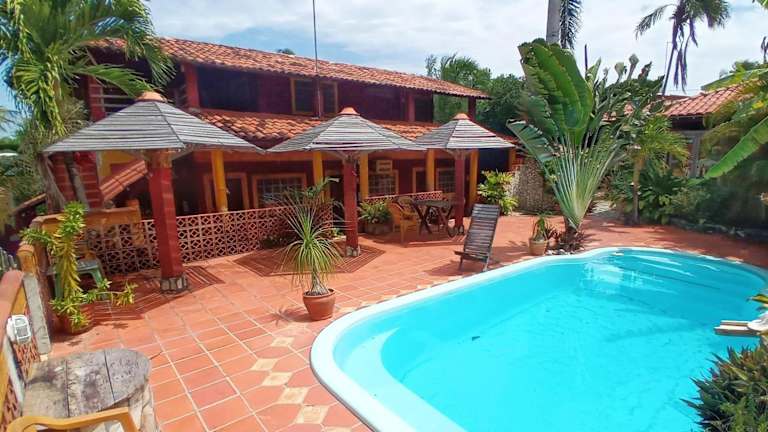 Verbringen Sie einen traumhaften Urlaub im Hotel Vila Da Lua in Jacumã. Die tropische Strandpension bietet eine entspannte Atmosphäre und zahlreiche Aktivitäten im Freien. Entspannen Sie am Außenpool, umgeben von Palmen und Blumen, oder erkunden Sie die Region bei Ausflügen. Die farbenfroh dekorierten Zimmer verfügen über einen eigenen Balkon mit Hängematten und bieten eine gemütliche Atmosphäre. Nutzen Sie auch die Gemeinschaftsküche und genießen Sie kostenfreies WLAN und Parkplätze. In der Nähe befinden sich der Strand Amor und der Strand Tambaba. Die Stadt João Pessoa ist ebenfalls leicht erreichbar.