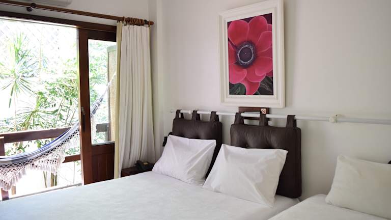 Jedes Zimmer in der Pousada Encanto de Itapoan ist gemütlich und komfortabel eingerichtet und verfügt über einen Balkon mit einer Hängematte, auf der Sie sich entspannen können. Die Zimmer sind mit Klimaanlage, eigenem Bad, Telefon, Kabel-TV und Minibar ausgestattet, um Ihren Aufenthalt so angenehm wie möglich zu gestalten. Hier können Sie sich nach einem Tag am Strand oder der Erkundung der Umgebung zurückziehen und sich in Ihrem eigenen kleinen Rückzugsort entspannen.