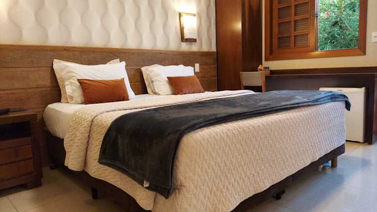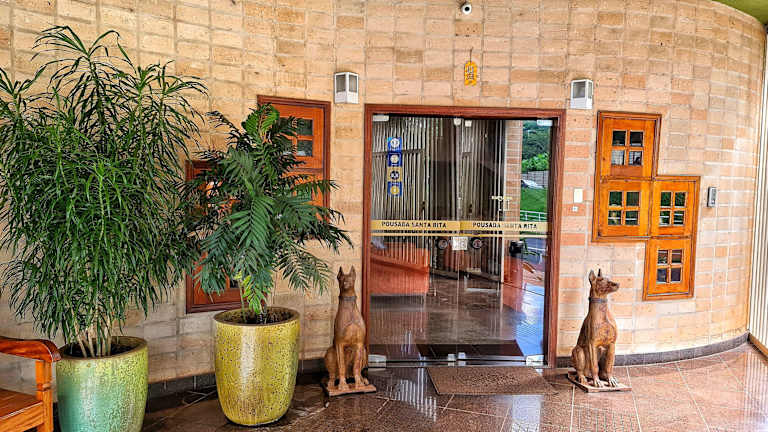 Die klimatisierten Zimmer im Hotel Pousada Santa Rita sind komfortabel und bieten einen separaten Wohnbereich. Sie sind praktisch eingerichtet und verfügen über ein klassisches Dekor mit dunklen Holzmöbeln. Zur Ausstattung gehören ein TV, eine Minibar und ein eigenes Bad. Einige Zimmer verfügen auch über eine Whirlpool-Badewanne und ein Kingsize-Bett.