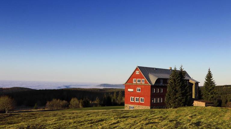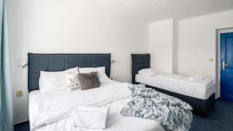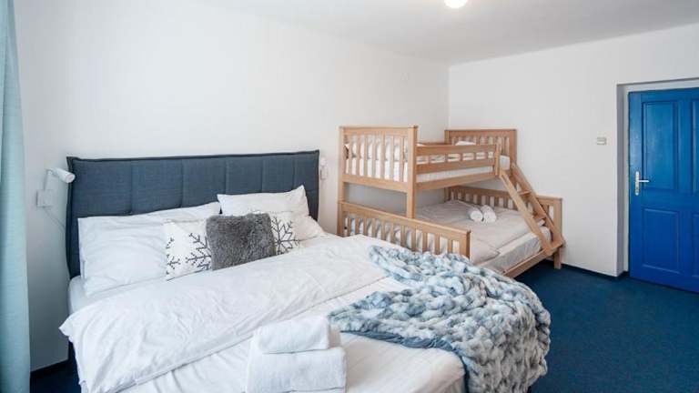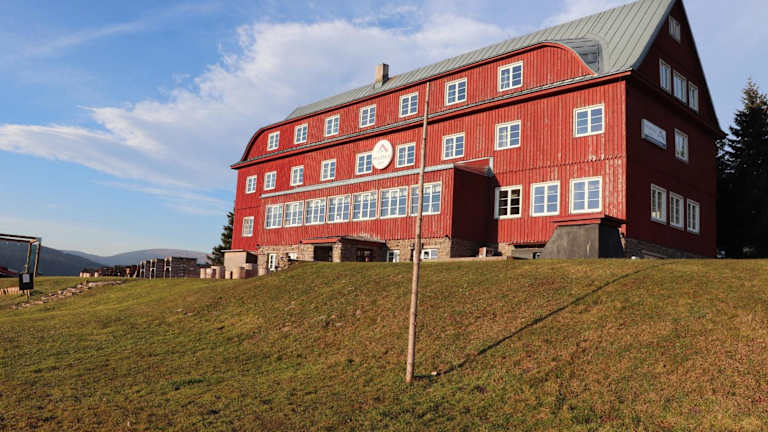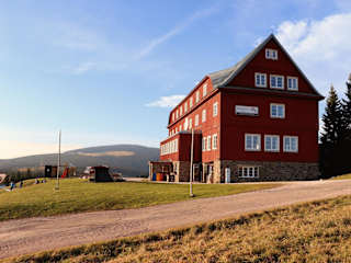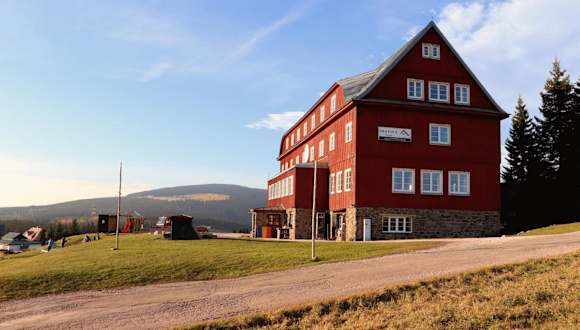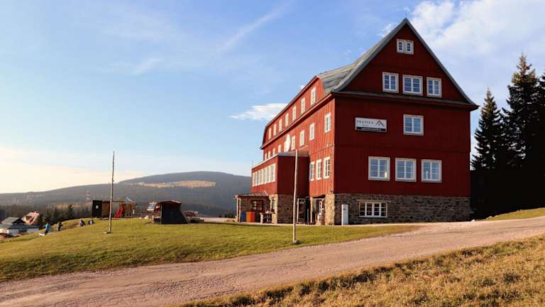 Das Hotel Prazska Bouda liegt an der Kreuzung zwischen Cerna hora, Pec pod Sněžkou und Černý Důl, nur 300 Meter vom Skilift Mulda entfernt. Die Skipisten in Pec sind ebenfalls in der Nähe, nur 500 Meter vom Hotel entfernt. Für Langläufer beginnen die Loipen direkt vor der Haustür. Wenn Sie Tagesausflüge unternehmen möchten, bieten sich die 19 km entfernten Kämme der Schneekoppe an. Die Lage des Hotels im Nationalpark Riesengebirge macht es auch im Sommer zu einem idealen Ausgangspunkt für Wanderungen und Radtouren.