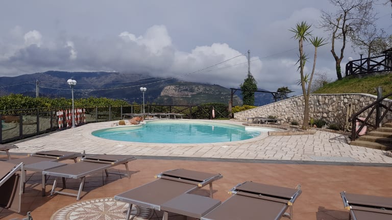 Das Hotel Prestige auf der Halbinsel Sorrento bietet seinen Gästen einen erholsamen Aufenthalt inmitten der grünen Hügel mit herrlichem Blick auf den Golf von Neapel und Salerno. Freuen Sie sich auf einen schönen Freiformpool, ein exzellentes À-la-carte-Restaurant und einen kostenfreien Shuttleservice ins Zentrum von Sorrento. Die elegant eingerichteten Zimmer bieten modernen Komfort und einige Zimmer verwöhnen mit einem atemberaubenden Meerblick. Genießen Sie ein köstliches Frühstück mit einer Auswahl an Aufschnitt, Käse, frisch gebackenem Brot, Obst und Müsli. Das Restaurant des Hotels ist auf die regionale Küche von Kampanien spezialisiert und bietet Ihnen köstliche Abendessen. Parkplätze stehen gegen Gebühr zur Verfügung und Ausflüge zu den Städten Neapel und Pompeji können organisiert werden. Transfers vom und zum Flughafen Neapel sind ebenfalls möglich. Entdecken Sie die wunderschöne Küstenstadt Positano, die nur 13 km vom Hotel entfernt liegt.