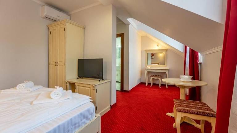 Das Hotel PrincesSophie in Sighişoara ist die ideale Unterkunft für Reisende, die einen komfortablen und entspannten Aufenthalt in der Nähe der historischen Stätten der Region suchen. Mit erstklassigen Annehmlichkeiten wie einem Restaurant, kostenfreien Privatparkplätzen und einer Bar bietet das Hotel eine Vielzahl von Annehmlichkeiten für einen angenehmen Aufenthalt. Die Zimmer sind stilvoll eingerichtet und verfügen über moderne Annehmlichkeiten wie Klimaanlage, Flachbild-TV und kostenfreies WLAN. Entspannen Sie nach einem ereignisreichen Tag in der Sauna des Hotels.