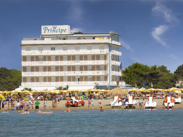 Das Hotel Principe liegt direkt an der Promenade von Caorle und bietet einen herrlichen Meerblick. Der private Strand mit kostenlosen Liegestühlen und Sonnenschirmen lädt zum Entspannen ein. Das Zentrum von Caorle ist nur 850 m entfernt und Venedig ist mit dem Auto in etwa 1 Stunde erreichbar. Die Autobahn A4 ist ebenfalls nur 30 Fahrminuten entfernt.