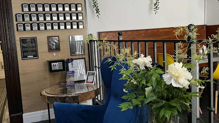 Ein kleines schmales Haus, mitten in einer großen Stadt. Die Einrichtung ist stilvoll und gemütlich. Man fühlt sich geborgen trotz der fremden Umgebung.