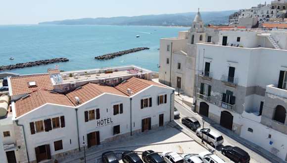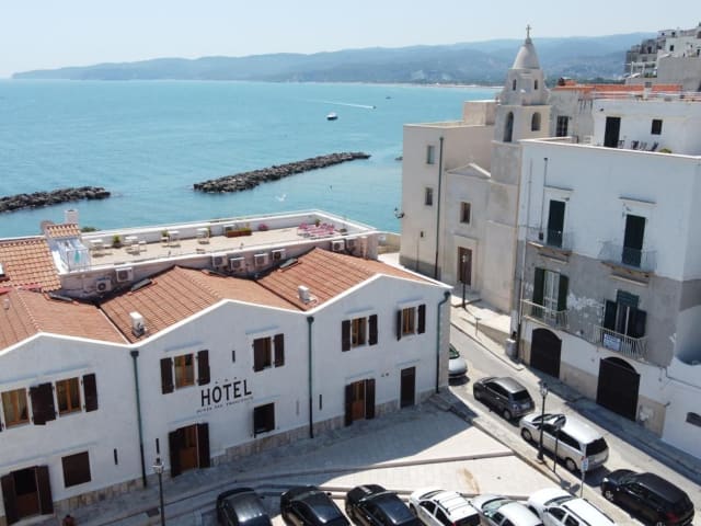 Das Hotel Punta San Francesco in Vieste ist ein charmantes Hotel, das direkt an der Klippe am Rande der Altstadt liegt und einen atemberaubenden Blick auf das Meer bietet. Die Zimmer sind komfortabel und funktional eingerichtet und verfügen über alle Annehmlichkeiten, die Sie für einen angenehmen Aufenthalt benötigen. Genießen Sie das Frühstücksbuffet mit frischen Backwaren und entspannen Sie auf der Sonnenterrasse mit Panoramablick. Die Lage des Hotels ermöglicht es Ihnen, bequem den Kai San Lorenzo zu erreichen, von dem aus Sie Fähren nach Manfredonia und Kroatien nehmen können.