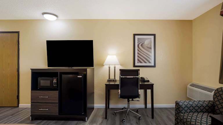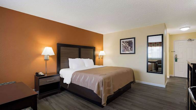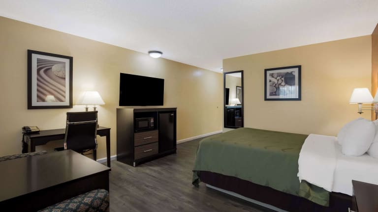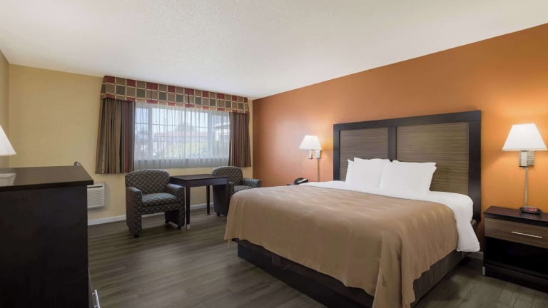Die 120 Nichtraucherzimmer im Quality Inn & Suites Medford Airport bieten geräumige und komfortable Unterkünfte für einen angenehmen Aufenthalt. Jedes Zimmer ist mit Annehmlichkeiten wie einer Klimaanlage, einer Mikrowelle, einem Kühlschrank, einer Kaffeemaschine, einem Safe, einem Schreibtisch und einem TV-Gerät mit Kabelanschluss ausgestattet. Rollstuhlgerechte Zimmer sind auf Anfrage verfügbar.