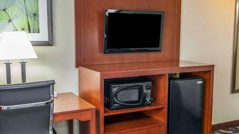 Die Zimmer im Quality Inn & Suites South Bend Airport sind komfortabel und mit Annehmlichkeiten wie einem 32-Zoll-LED-TV, einem Bügeleisen/-brett, einem Haartrockner und einer Kaffeemaschine ausgestattet. Die Suiten bieten zusätzlich eine Mikrowelle und einen Kühlschrank. Nichtraucherzimmer sind verfügbar und Haustiere sind gegen eine Gebühr pro Nacht willkommen.
