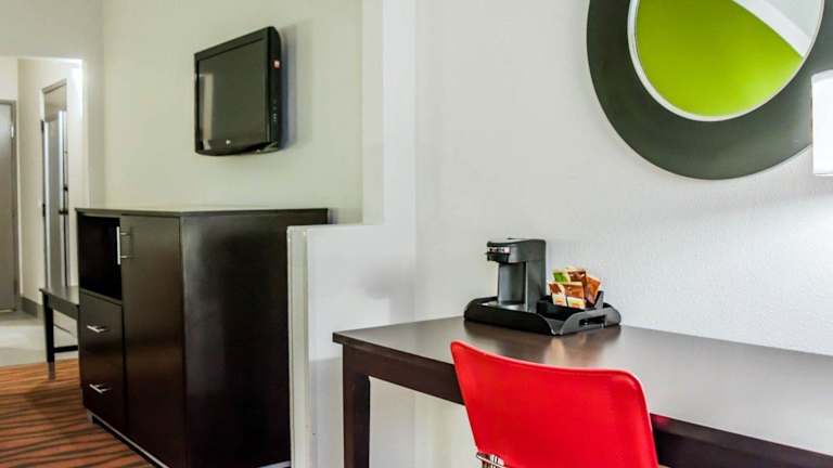 Das Quality Suites Fort Myers Airport I-75 Hotel verfügt über 65 Nichtraucherzimmer auf 2 Etagen. Die Zimmer sind gut ausgestattet und verfügen über eine Klimaanlage, eine individuell steuerbare Heizung, ein Doppelbett, einen Safe und einen Schreibtisch. In der Kochnische finden Sie einen Kühlschrank, eine Mikrowelle und eine Tee-/Kaffeemaschine. Zur weiteren Ausstattung gehören ein Telefon mit Direktwahl, ein TV-Gerät mit Satelliten-/Kabelempfang und kostenfreies WLAN. Die Badezimmer sind mit einer Dusche und einem Haartrockner ausgestattet. Rollstuhlgerechte Zimmer sind auf Anfrage buchbar.