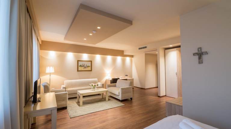 Das Hotel Quercus befindet sich im Zentrum von Medjugorje, nur 300 m von der St.-Jakobs-Kirche und 1 km vom Kreuzberg Križevac entfernt. In unmittelbarer Nähe finden Sie auch den Busbahnhof und die Stadt Mostar ist nur 27 km entfernt. Der Flughafen Mostar ist ebenfalls gut erreichbar und liegt 32 km entfernt.