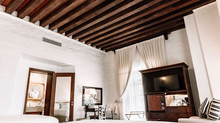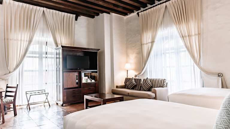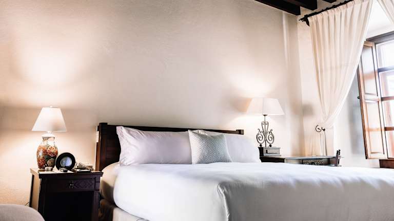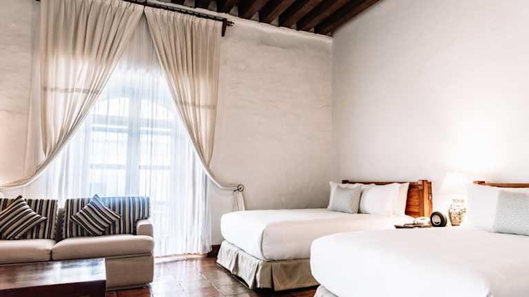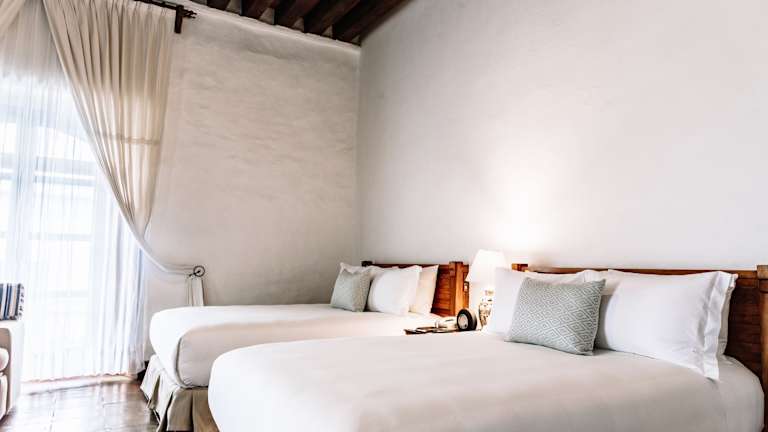 Das Quinta Real Oaxaca verfügt über insgesamt 91 Zimmer, die den Gästen ein komfortables und stilvolles Ambiente bieten. Die Zimmer sind mit Klimaanlage, Ventilator, Balkon, Doppelbett oder Kingsize-Bett, Safe, Minibar, Schreibtisch, Tee-/Kaffeemaschine, Bügeleisen/-brett, Telefon, Sat-TV, Radio und WLAN ausgestattet. Im Badezimmer finden die Gäste eine Dusche, Badewanne, Haartrockner, Bademäntel und Hausschuhe. Das Hotel bietet auch rollstuhlgerechte Zimmer mit barrierefreiem Bad. Rauchen ist in allen Zimmern und im gesamten Hotel nicht gestattet.