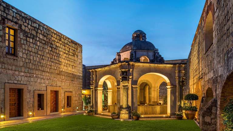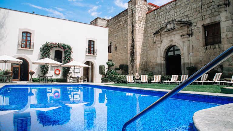 Das Quinta Real Oaxaca befindet sich im historischen Zentrum von Oaxaca de Juárez, nur wenige Straßen entfernt von Museen, Kirchen, Geschäften und Kunsthandwerkermärkten. Der nächste Busbahnhof ADO ist etwa 15 Autominuten entfernt, während der Golfplatz Vistahermosa und die archäologische Stätte Monte Albán in etwa 30 Minuten erreichbar sind. Die archäologische Stätte Mitla ist etwa 40 Fahrminuten entfernt. Der Flughafen von Oaxaca ist ca. 20 km vom Hotel entfernt.