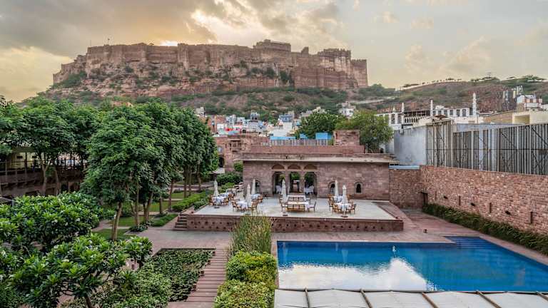 Das Raas Jodhpur ist ein wunderschönes Boutique-Hotel mit einer atemberaubenden Architektur im Haveli-Stil. Hier können Sie sich in einer luxuriösen Umgebung entspannen und den Blick auf das Mehrangarh Fort genießen. Das Hotel bietet erstklassigen Service, einen Wellnessbereich, einen Außenpool und zwei Restaurants mit einer Vielzahl von kulinarischen Köstlichkeiten.
