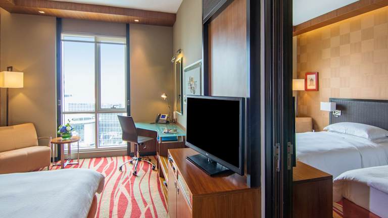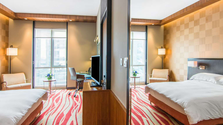 Das Hotel verfügt über 246 Zimmer, die hell und geräumig sind. Jedes Zimmer ist mit moderner Ausstattung, einer Klimaanlage, einem Safe, einer Minibar, einem TV-Gerät und kostenfreiem WLAN ausgestattet. Die Badezimmer bieten eine Dusche und/oder Badewanne, einen Haartrockner, Bademäntel und Hausschuhe. Zusätzlich stehen rollstuhlgerechte Zimmer zur Verfügung.