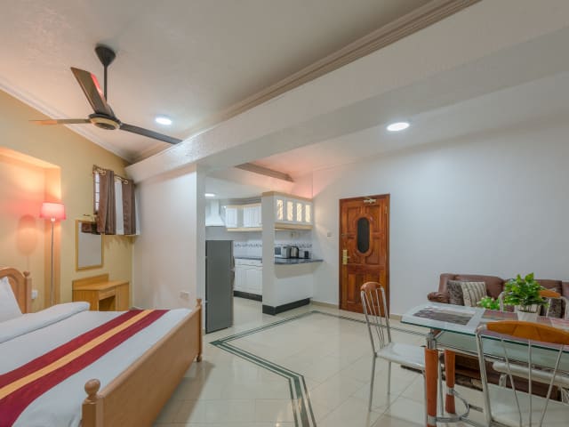Die Zimmer im Hotel Raha Tower sind klimatisiert und verfügen über einen Kleiderschrank, einen Ventilator und einen Safe. Zur weiteren Ausstattung gehören ein Flachbild-Sat-TV und ein eigenes Badezimmer mit kostenlosen Pflegeprodukten. Die Zimmer bieten modernen Komfort und sind ein angenehmer Rückzugsort nach einem erlebnisreichen Tag.