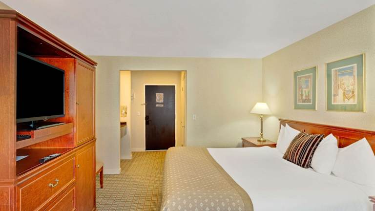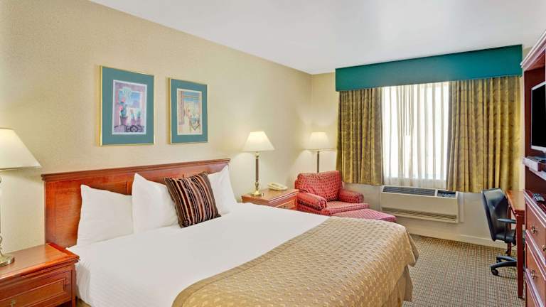 Das Ramada by Wyndham Draper in Draper, Utah, ist ein komfortables und haustierfreundliches Hotel, das Ihnen angenehme Zimmer mit kostenfreiem WLAN und ein tägliches kontinentales Frühstück bietet. Die Lage des Hotels direkt an der Interstate 15 ermöglicht eine gute Erreichbarkeit und das Zentrum von Salt Lake City ist nur ca. 28 km entfernt. Das Hotel bietet zudem Annehmlichkeiten wie ein Fitnesscenter, ein Businesscenter und einen 24-Stunden-Rezeptionsservice.