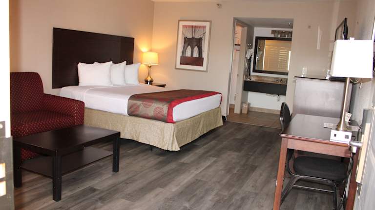 Die modernen Zimmer im Ramada by Wyndham Tempe/At Arizona Mills Mall sind stilvoll eingerichtet und bieten kostenloses WLAN, einen Flachbild-Kabel-TV und kostenfreie Pflegeprodukte im eigenen Badezimmer. Die Zimmer sind in weißer Bettwäsche und dunklen Holzmöbeln gestaltet und bieten einen komfortablen Rückzugsort für die Gäste.