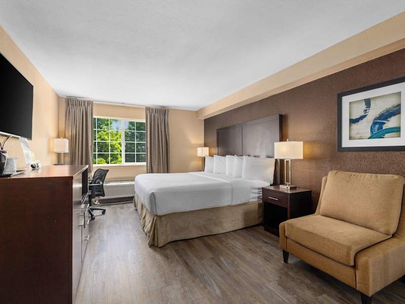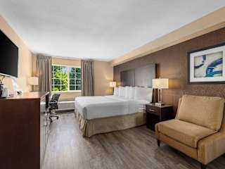 Die Zimmer im Ramada by Wyndham Portland sind komfortabel und bieten Annehmlichkeiten wie Flachbildfernseher, Arbeitsbereiche mit Stühlen und Tee-/Kaffeekocher. Jedes Zimmer verfügt auch über ein eigenes Badezimmer mit Haartrockner. Die Gäste können den kostenfreien WLAN-Zugang in Anspruch nehmen und erhalten 24 Stunden am Tag kostenlosen Kaffee in der Empfangshalle.