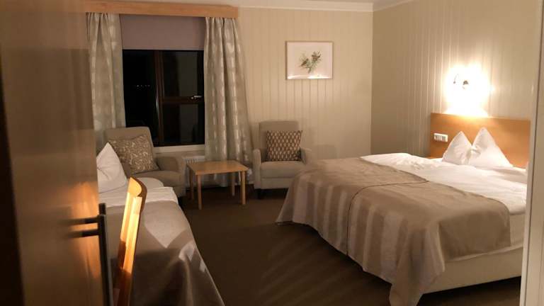 Im hoteleigenen Restaurant können Sie traditionelle isländische Gerichte genießen. Das Restaurant bietet auch ein Frühstücksbuffet, um Ihren Tag gut zu beginnen. An der Bar können Sie erfrischende Getränke bestellen und den Abend gemütlich ausklingen lassen.