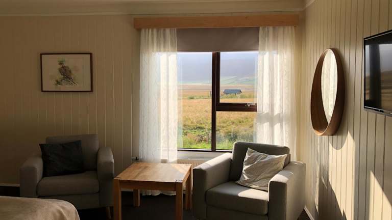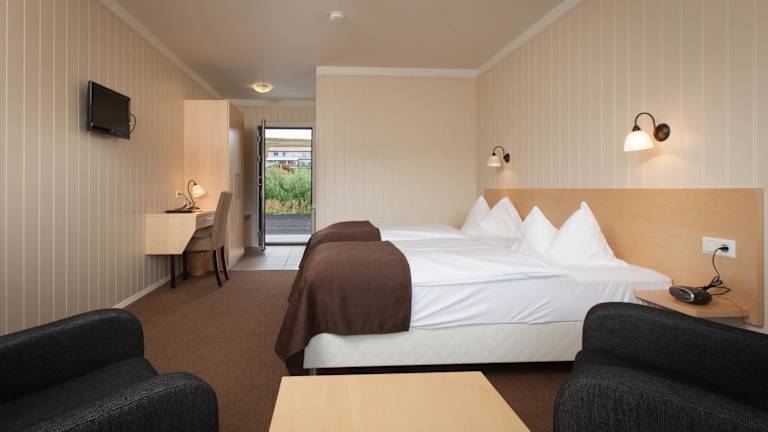 Die Zimmer im Hotel Raudaskrida sind komfortabel eingerichtet und bieten einen gemütlichen Sitzbereich und einen Schreibtisch. Sie haben die Wahl zwischen Zimmern mit eigenem Bad oder Gemeinschaftsbad. Alle Zimmer sind mit einem Fernseher, Kaffee- und Teezubehör sowie einem eigenen Bad ausgestattet.