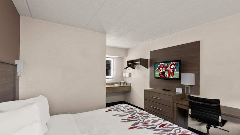 Das Red Roof Inn Binghamton - Johnson City bietet moderne und farbenfrohe Zimmer, die den Gästen einen angenehmen Aufenthalt bieten. Jedes Zimmer ist mit einem Flachbild-Kabel-TV mit HBO-Kanälen ausgestattet, sodass die Gäste ihre Lieblingssendungen und Filme genießen können. Die Zimmer sind komfortabel und bieten alles, was man für einen gelungenen Aufenthalt benötigt.