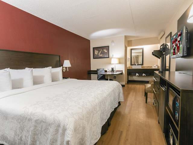Die Zimmer im Red Roof Inn PLUS+ West Springfield sind komfortabel und in hellen Farben gehalten. Jedes Zimmer verfügt über Kabel-TV und einen Schreibtisch, so dass Sie auch während Ihres Aufenthalts produktiv sein können. Einige Zimmer bieten auch zusätzliche Annehmlichkeiten wie eine Mikrowelle und einen Kühlschrank. Das Hotel bietet auch kostenfreies WLAN in allen Zimmern, so dass Sie immer mit der Außenwelt verbunden bleiben können.