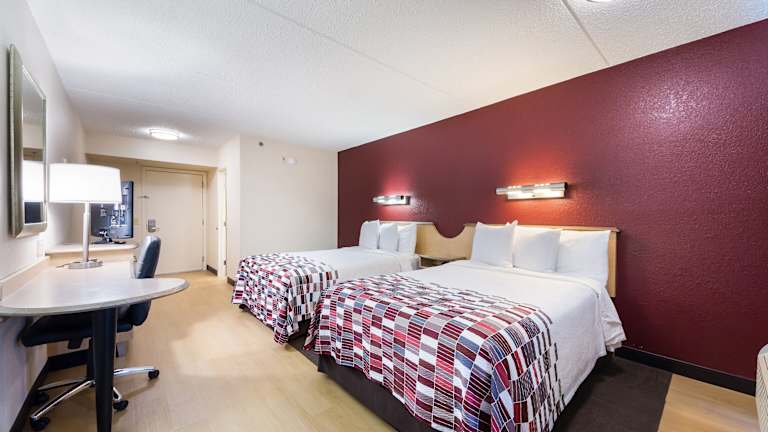 Das Red Roof Inn verfügt über 150 Nichtraucherzimmer, die alle mit einem Flachbild-Kabel-TV ausgestattet sind. Einige Zimmer verfügen auch über eine Mikrowelle, einen Kühlschrank und eine Kaffeemaschine. Für zusätzlichen Komfort steht den Gästen kostenloses WLAN zur Verfügung. Das Motel bietet auch eine 24-Stunden-Rezeption, eine Snackbar und kostenlosen Kaffee in der Lobby.