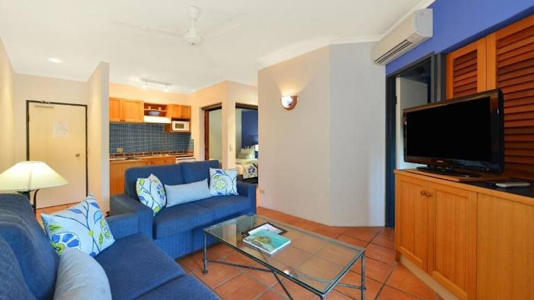 Das Reef Club Resort in Port Douglas bietet seinen Gästen eine mediterrane Atmosphäre im Landhausstil und eine ideale Lage nur wenige Gehminuten vom berühmten 4 Mile Beach entfernt. Genießen Sie entspannte Tage am Außenpool oder im Whirlpool und erkunden Sie die umliegende Natur. Die Apartments sind komfortabel ausgestattet und verfügen über eine Küchenzeile, einen möblierten Balkon und kostenfreies WLAN. Das Resort bietet zudem Annehmlichkeiten wie einen Grillplatz, kostenlose Parkplätze und eine Waschküche. Nutzen Sie die Nähe zum Great Barrier Reef und dem Daintree Rainforest für spannende Ausflüge.