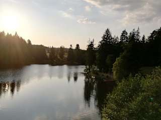 Das Hotel Reich am Ebnisee liegt etwa 40 km vom Bahnhof Ludwigsburg entfernt. In der Umgebung finden Sie verschiedene Sehenswürdigkeiten wie den Cannstatter Wasen, die Porsche-Arena und das Staatstheater, die jeweils etwa 47 km bis 50 km entfernt sind. Der Hauptbahnhof Stuttgart ist etwa 50 km vom Hotel entfernt. Der nächstgelegene Flughafen ist der Flughafen Stuttgart, der etwa 66 km entfernt liegt.