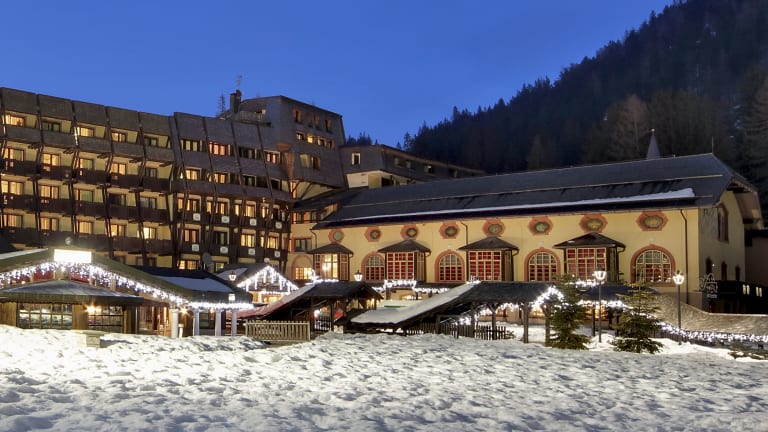 Das Hotel Club Relais Des Alpes liegt im Zentrum von Madonna di Campiglio und bietet eine ideale Lage für Outdoor-Aktivitäten im Adamello Brenta Nationalpark. Die Spinale Skipisten sind nur einen kurzen Spaziergang entfernt und die Talstation der Seilbahn ist in der Nähe. Die Stadt Trento ist mit dem Auto in 75 Minuten erreichbar und die Autobahn A22 ist 60 km entfernt.