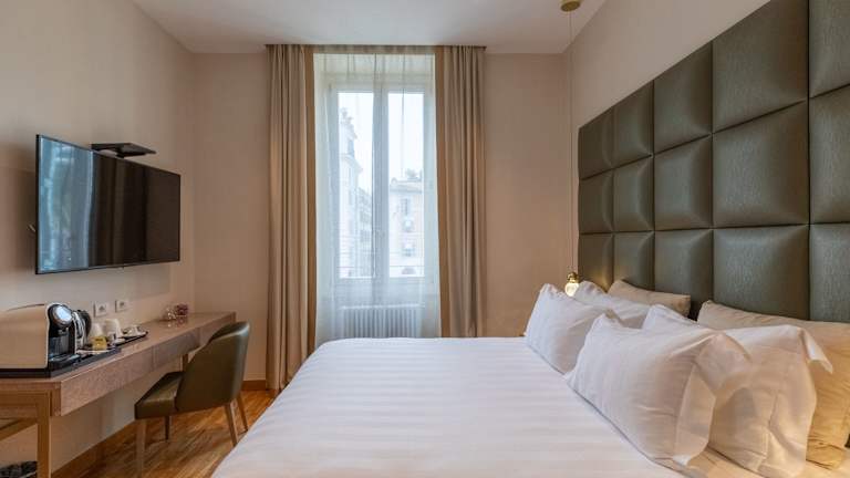 Die klimatisierten Zimmer der Unterkunft sind ausgestattet mit einem Schreibtisch, einer Kaffeemaschine, einer Minibar, einem Safe, einem Flachbild-TV sowie einem eigenen Badezimmer mit einem Bidet. Alle Zimmer verfügen über einen Kleiderschrank.