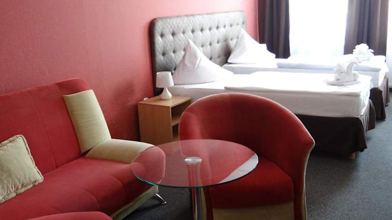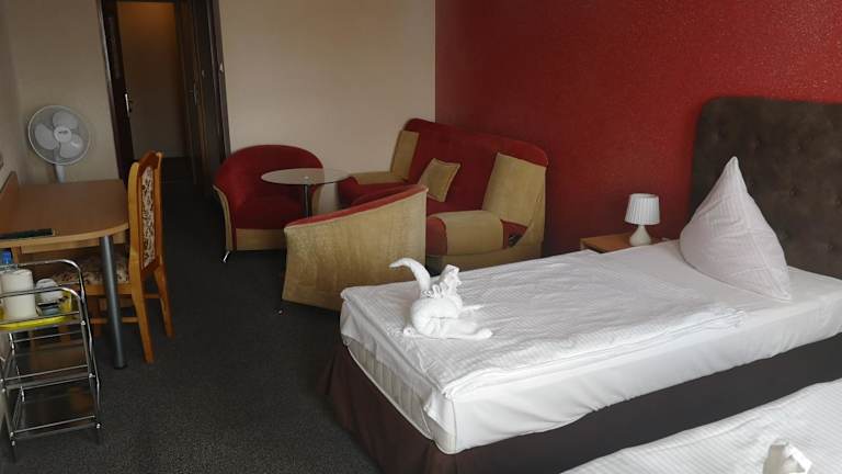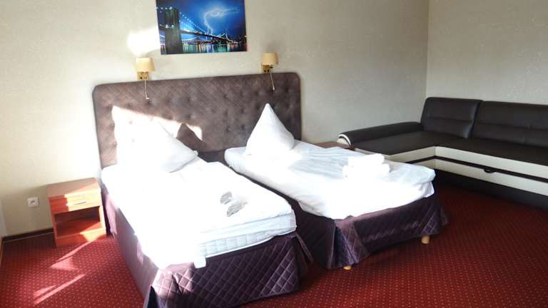 Die Zimmer im Hotel Relax sind klassisch eingerichtet und bieten Ihnen eine komfortable Unterkunft. Jedes Zimmer ist schallisoliert und verfügt über Annehmlichkeiten wie kostenfreies WLAN, einen LCD-TV mit Sat- und Kabelkanälen, einen Kühlschrank und einen Schreibtisch. Die eigenen Badezimmer sind mit einer Dusche und Pflegeprodukten ausgestattet.