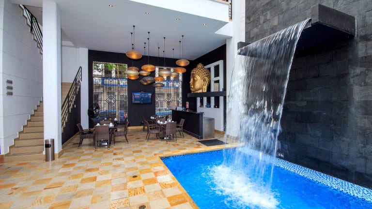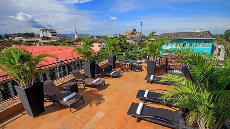 Das Hotel Republicano 1910 in Girardot bietet seinen Gästen einen angenehmen Aufenthalt mit zahlreichen Annehmlichkeiten. Entspannen Sie im Wellnessbereich, trainieren Sie im Fitnesscenter oder genießen Sie eine erfrischende Abkühlung im Pool. Die Zimmer sind komfortabel eingerichtet und verfügen über kostenloses WLAN und Klimaanlage. Kostenlose Parkplätze stehen zur Verfügung. Die zentrale Lage des Hotels ermöglicht es Ihnen, den Bolivar-Platz, den Pier und den Busbahnhof bequem zu Fuß zu erreichen.