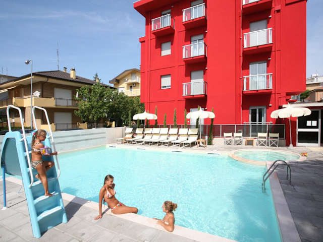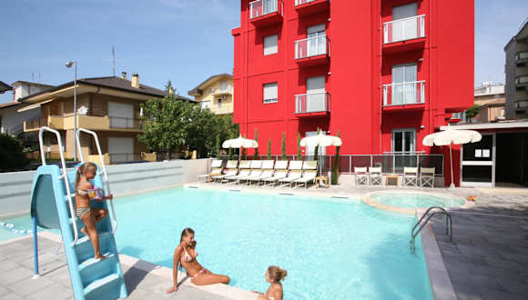 Die Residence Altomare in Riccione ist der ideale Ort für einen entspannten Urlaub. In ruhiger Lage und nur 100 m vom Strand entfernt bietet das Hotel moderne Suiten mit kostenfreiem WLAN. Der Außenpool mit Wasserrutsche und Hydromassagebereich sorgt für Spaß und Entspannung. Die Lage des Hotels ermöglicht es Ihnen, die Clubs von Viale Ceccarini zu erkunden und die öffentlichen Verkehrsmittel zu nutzen, um Sehenswürdigkeiten wie San Marino, San Leo und Gradara zu besuchen. Die Themenparks Aquafan und Oltremare sind nur eine kurze Autofahrt entfernt.