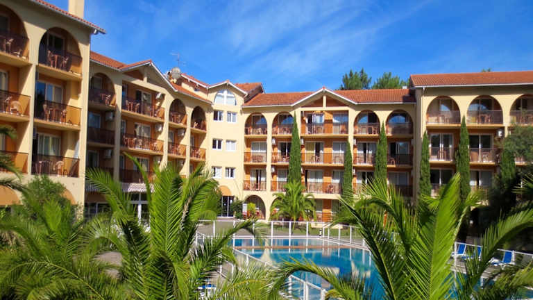 Die Hotel Résidence Anglet Biarritz-Parme befindet sich in einer günstigen Lage, nur 10 Fahrminuten von Biarritz und dem Strand entfernt. Die Umgebung bietet eine Vielzahl von Freizeitaktivitäten, darunter Wassersport, Golf und Radfahren. Die Kathedrale von Bayonne ist ebenfalls nur 2,7 km vom Hotel entfernt. Der Flughafen Anglet Biarritz ist nur 2,5 km entfernt und die Autobahn A63 erreichen Sie in nur 5 Fahrminuten.