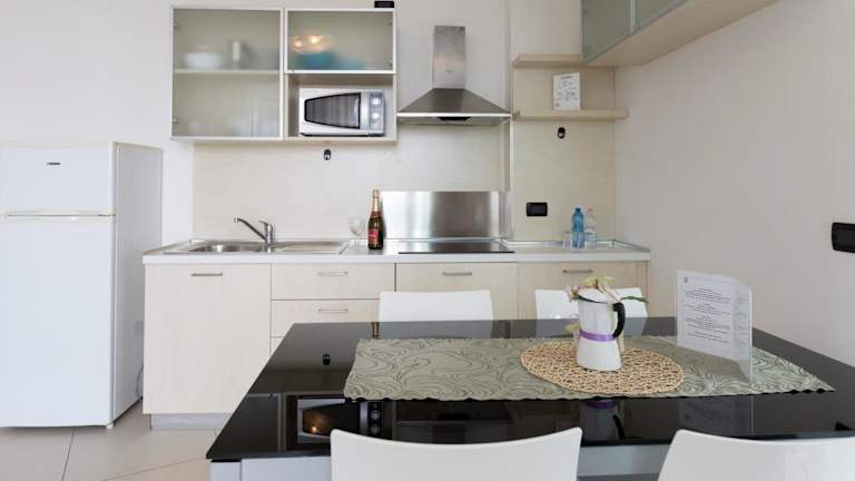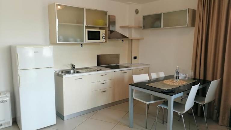 Hotel Residence Aprilia in guter Lage sehr nahe dem Zentrum von Grade, zu Fuss alles sehr gut zu erreichen, 350m entfernt von der schönen Strandpromenade, Hotel ist eher einfach eingerichtet, kein 4 Sterne Standard, wir hatten ein Doppelzimmer mit Kochnische, aber sehr gutes Frühstück