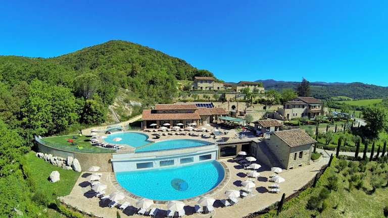Das Spa Resort Fonte Alla Lepre befindet sich in der Gemeinde Riparbella, in der malerischen toskanischen Landschaft. Trotz seiner ruhigen Lage ist das Resort nur wenige Kilometer vom Meer entfernt. Die Autobahn E80 ist ebenfalls leicht zu erreichen, sodass Sie bequem weitere Ausflugsziele in der Umgebung erkunden können. Innerhalb einer kurzen Autofahrt erreichen Sie die charmante Stadt Volterra, die berühmte Stadt Pisa und die kulturelle Hauptstadt Florenz.
