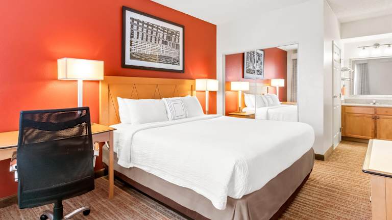 Die Suiten im Residence Inn Phoenix Goodyear sind geräumig und verfügen über eine voll ausgestattete Küche, kostenfreies WLAN und einen 32-Zoll-Kabel-TV. Jede Suite bietet einen Essbereich und ein Wohnzimmer mit einem Schlafsofa. Die Zimmer sind komfortabel und bieten alles, was Sie für einen angenehmen Aufenthalt benötigen.