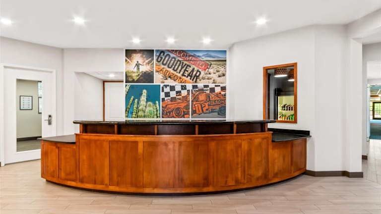 Das Residence Inn Phoenix Goodyear befindet sich in Goodyear und liegt in der Nähe des Golfplatzes Palm Valley sowie des Zoo Wildlife World. Die Rennstrecke Phoenix International Raceway und die Luke Air Force Base sind ebenfalls gut zu erreichen. Die Umgebung bietet eine Vielzahl von Freizeitaktivitäten und Attraktionen.