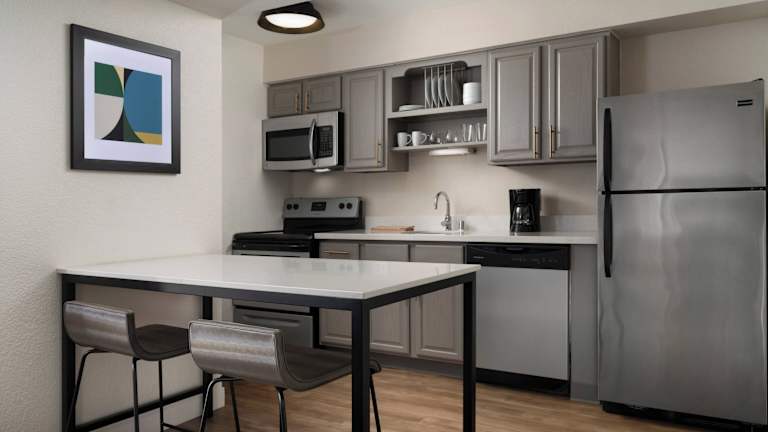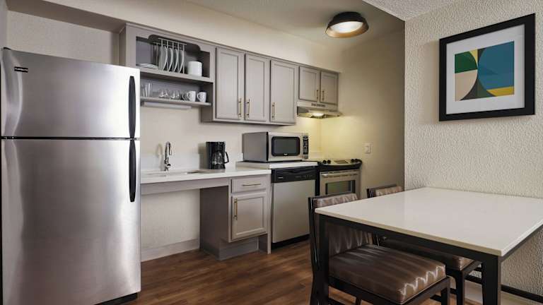 Die Zimmer im Residence Inn Sunnyvale Silicon Valley II sind komfortabel und bieten Ihnen eine voll ausgestattete Küche, kostenfreies WLAN, Sat-TV und ein eigenes Bad. Ein Esstisch und ein Schreibtisch sind ebenfalls vorhanden, um Ihnen einen angenehmen Aufenthalt zu ermöglichen.