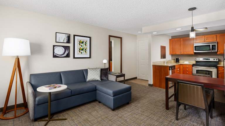 Die Zimmer im Residence Inn Bothell sind geräumig und bieten eine voll ausgestattete Küche mit Kochfeld, Geschirrspüler und allen notwendigen Utensilien. Es gibt auch einen gemütlichen Sitzbereich mit Flachbild-TV, Tee- und Kaffeezubereitungsmöglichkeiten sowie einen Schreibtisch. Die Zimmer bieten alles, was Sie für einen komfortablen Aufenthalt benötigen.