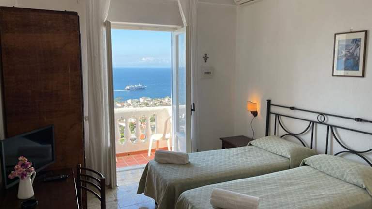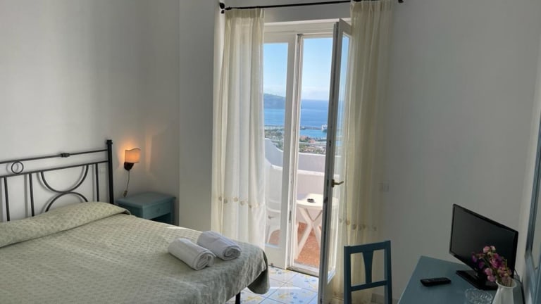 Das Hotel verfügt über insgesamt 34 Zimmer, die alle Komfort und Annehmlichkeiten bieten. Die Doppelzimmer mit Meerblick sind im Haupthaus gelegen und verfügen über ein eigenes Bad oder eine Dusche/WC. Zur Ausstattung gehören auch ein Balkon oder eine Terrasse, eine Klimaanlage (gegen Gebühr) und ein TV.